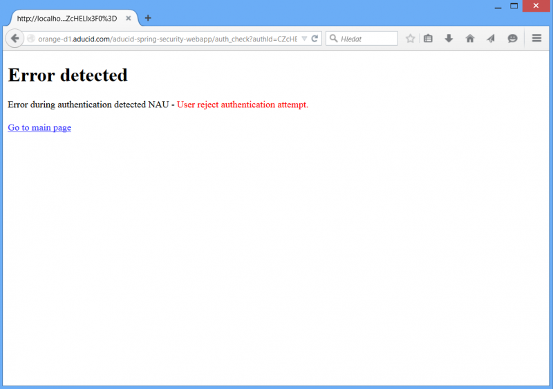 Error page is displayed whenever any exception is thrown during authentication process. Two ADUCID specific exceptions can be thrown away.
