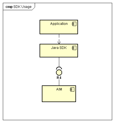 This SDK is supplied as a standard Java library, which can be used by the application as an indirection layer when communicating with the R4 AIM interface.