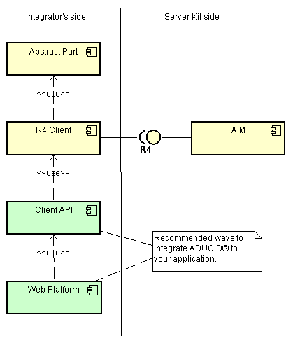 It is highly recommended to work with Client API or/and Web Platform only as the high level APIs. Abstract Part and R4 Client parts are for ADUCID® masters only.