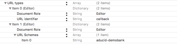 PEIG sends response back to mobile application via URI scheme. Please, define URI scheme for your mobile application in info.plist file. For DemoBank application is defined as aducid-demobank. See image below: